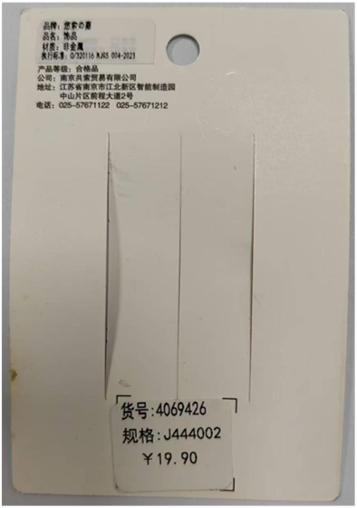 日前,南京共索贸易有限公司按照《消费品召回管理暂行规定》《江苏省缺陷消费品召回管理办法》的要求,主动向西港娱乐城 报告了召回计划,将自2026年3月27日起,召回2025年1月期间生产的悠索之嘉牌饰品(货号:4069426/规格:J444002),涉及数量为60件。