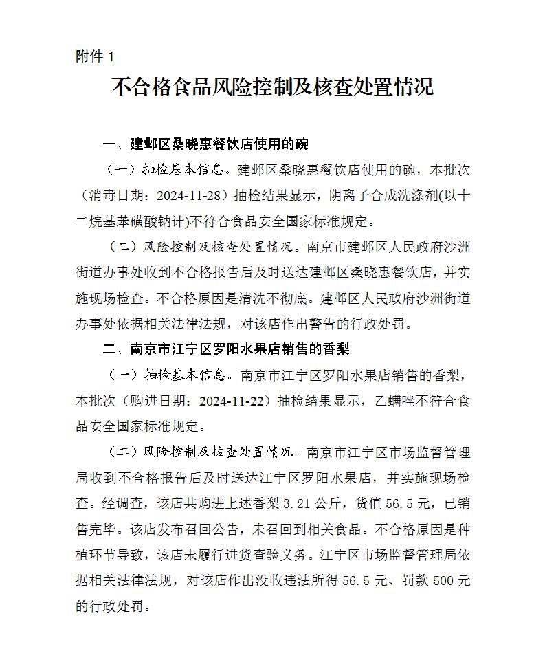 附件:1.不合格食品风险控制及核查处置情况