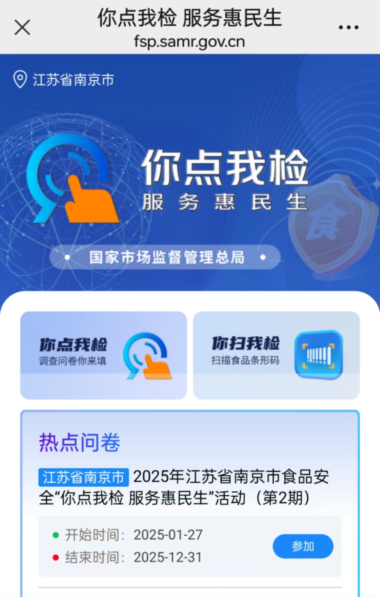 诚邀您参与2025年食品安全 “你点我检 服务惠民生”问卷调查(第2期)