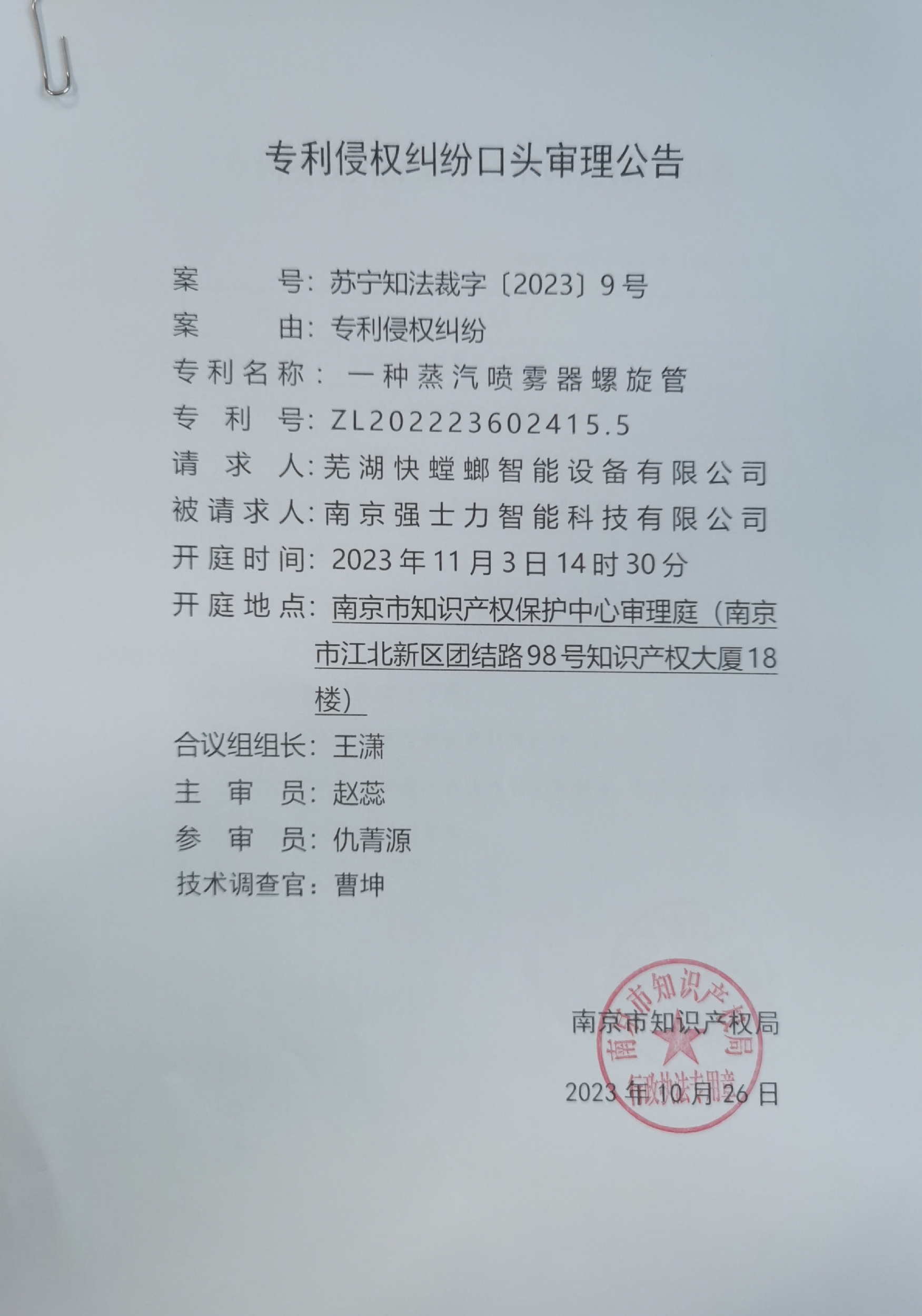 专利侵权纠纷口头审理公告(2023)9号.jpg