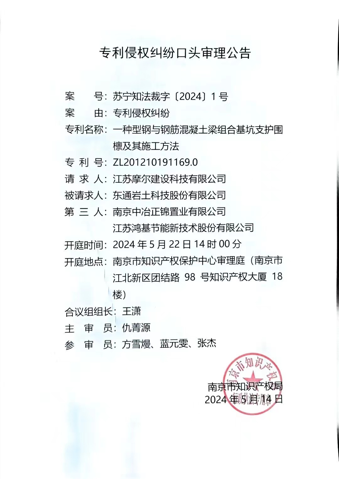 开庭地点:南京市知识产权保护中心审理庭(南京市江北新区团结路98号知识产权大厦18楼)